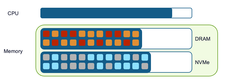 NVMe Tiering ist grundsätzlich für jeden Workload geeignet, ESX lagert automatisch nur “cold” und “very cold” pages auf das NVMe Device. “hot” pages bleiben immer im DRAM. Features wie vMotion, DRS sind vollkommen unterstützt. Besonders geeignet sind VDI und DB Workloads.