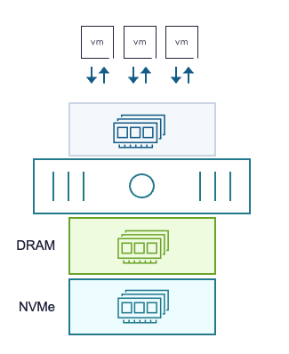 Mit dem NVMe Memory Tiering Feature in ESX können lokale NVMe SSDs als RAM genutzt werden. So können günstige NVMe Devices als RAM für Workloads genutzt werden, statt teurem DRAM. Bei NVMe Tier spricht VMware von Tier1 Memory, wobei DRAM als Tier0 zählt.