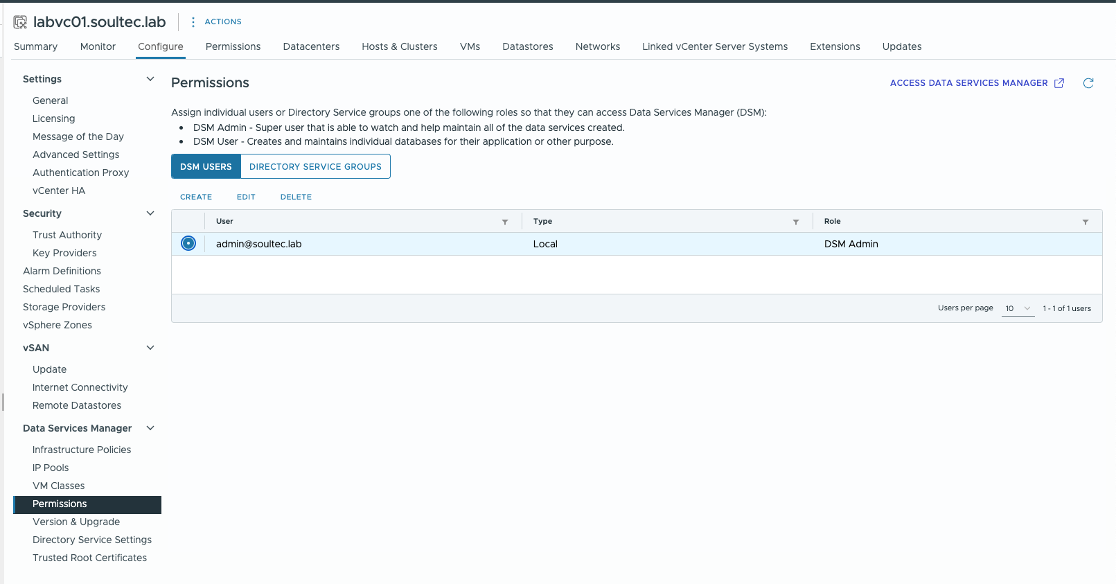 Die Credentials für das DSM UI werden via vCenter konfiguriert: